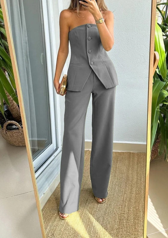 Sophisticated, elegant, and modern — this strapless set redefines feminine power.