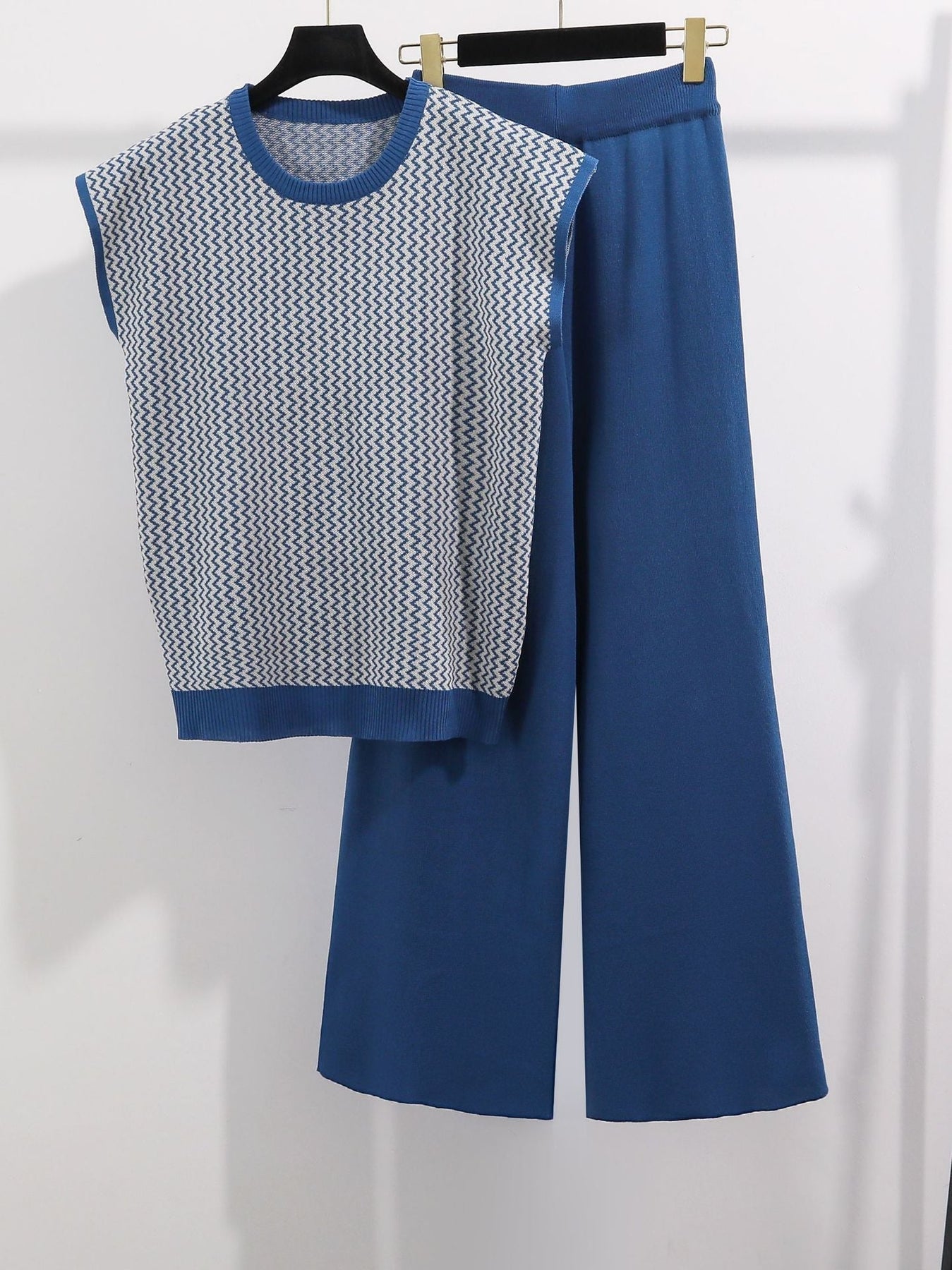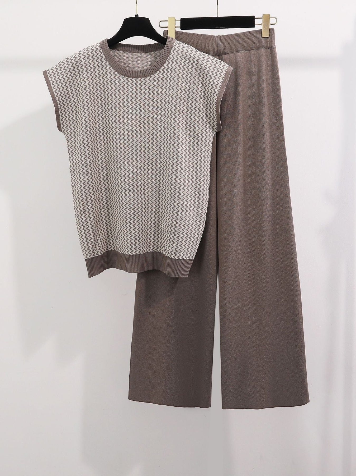 El jersey sin mangas aporta un toque moderno y ligero, mientras que el pantalón de punto ancho garantiza un ajuste cómodo y favorecedor, adaptándose a todas las siluetas sin sacrificar la sofisticación. Perfecto para cualquier ocasión, desde salir a pasear con tus amigas hasta una reunión más formal, este conjunto se convierte en un básico elegante para tu armario de otoño/invierno.
